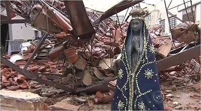TELHADO DE CAPELA DESABA E IMAGEM DE NOSSA SENHORA FICA INTACTA