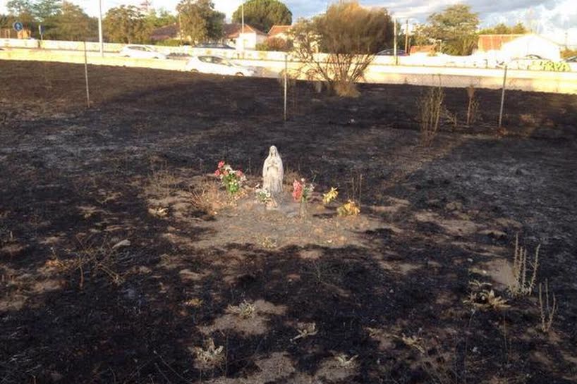 A surpresa foi tanto maior quando os fardados descobriram que o gramado perto da imagem não foi atingido pelo fogo e que em volta da imagem havia uns vasos com flores, também incólumes, que ninguém sabia quem tinha posto.